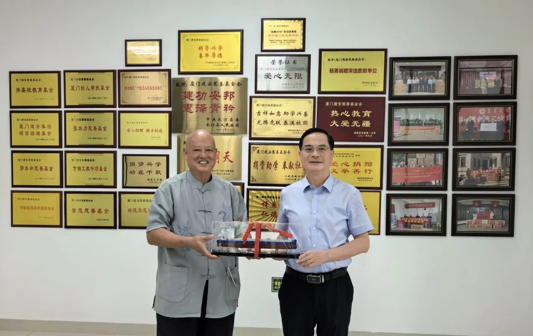 24日下午,集美大學(xué)黨委書(shū)記邱偉杰、校辦主任黃海宏、校董辦主任呂嫻一行蒞臨廈門建安慈善基金會(huì),拜訪校董孫吉龍先生。孫吉龍先生對(duì)邱書(shū)記一行的到來(lái)表示熱烈歡迎。